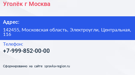 Уголёк, г. Москва по адресу 142455, Московская область, Электроугли, Центральная, 116 в дальнейшем Организация, размещена в следующих категориях: