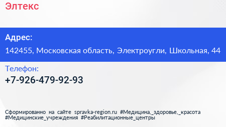 Элтекс по адресу 142455, Московская область, Электроугли, Школьная, 44 в дальнейшем Организация, размещена в следующих категориях:
