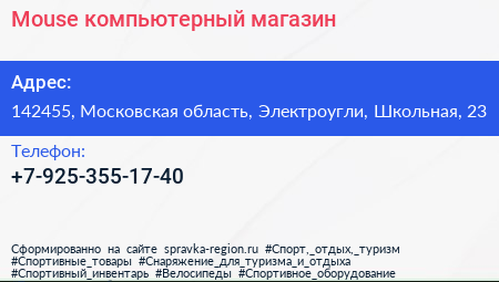 Mouse, компьютерный магазин по адресу 142455, Московская область, Электроугли, Школьная, 23 в дальнейшем Организация, размещена в следующих категориях: