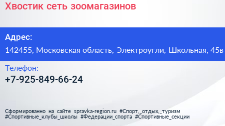 Хвостик, сеть зоомагазинов по адресу 142455, Московская область, Электроугли, Школьная, 45в в дальнейшем Организация, размещена в следующих категориях: