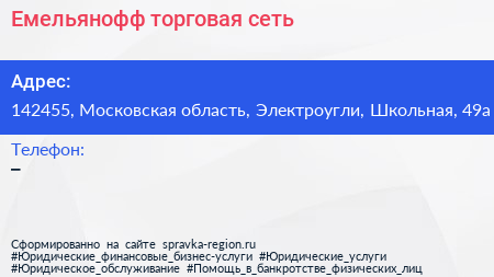 Емельянофф, торговая сеть по адресу 142455, Московская область, Электроугли, Школьная, 49а в дальнейшем Организация, размещена в следующих категориях: