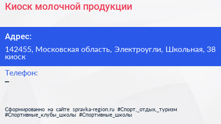 Киоск молочной продукции по адресу 142455, Московская область, Электроугли, Школьная, 38 киоск в дальнейшем Организация, размещена в следующих категориях: