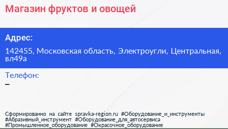 Магазин фруктов и овощей по адресу 142455, Московская область, Электроугли, Центральная, вл49а в дальнейшем Организация, размещена в следующих категориях: