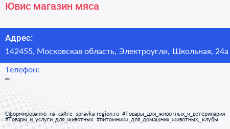 Ювис, магазин мяса по адресу 142455, Московская область, Электроугли, Школьная, 24а в дальнейшем Организация, размещена в следующих категориях: