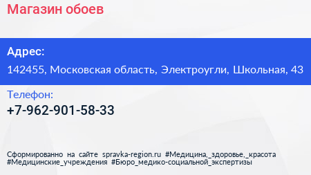 Магазин обоев по адресу 142455, Московская область, Электроугли, Школьная, 43 в дальнейшем Организация, размещена в следующих категориях:
