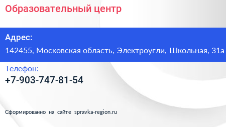 Образовательный центр по адресу 142455, Московская область, Электроугли, Школьная, 31а в дальнейшем Организация, размещена в следующих категориях: