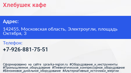 Хлебушек, кафе по адресу 142455, Московская область, Электроугли, площадь Октября, 3 в дальнейшем Организация, размещена в следующих категориях: