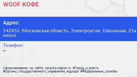 WOOF КОФЕ по адресу 142455, Московская область, Электроугли, Школьная, 21а киоск в дальнейшем Организация, размещена в следующих категориях: