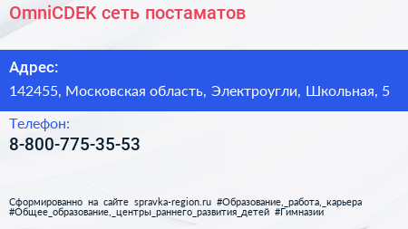 OmniCDEK, сеть постаматов по адресу 142455, Московская область, Электроугли, Школьная, 5 в дальнейшем Организация, размещена в следующих категориях: