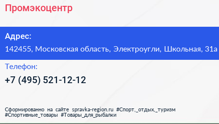 Промэкоцентр по адресу 142455, Московская область, Электроугли, Школьная, 31а в дальнейшем Организация, размещена в следующих категориях: