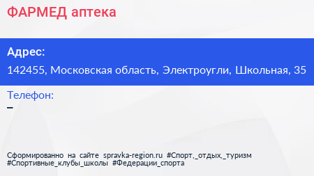 ФАРМЕД, аптека по адресу 142455, Московская область, Электроугли, Школьная, 35 в дальнейшем Организация, размещена в следующих категориях:
