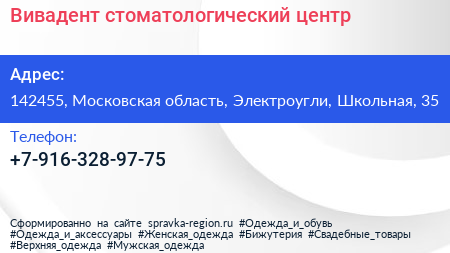 Вивадент, стоматологический центр по адресу 142455, Московская область, Электроугли, Школьная, 35 в дальнейшем Организация, размещена в следующих категориях: