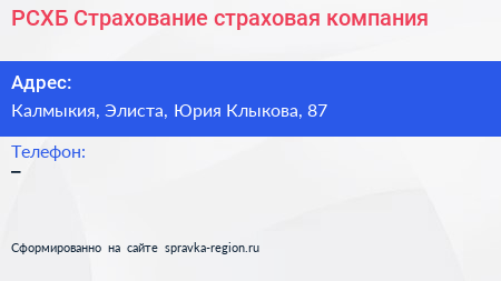 РСХБ-Страхование, страховая компания по адресу Калмыкия, Элиста, Юрия Клыкова, 87 в дальнейшем Организация, размещена в следующих категориях: