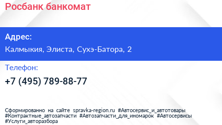 Росбанк, банкомат по адресу Калмыкия, Элиста, Сухэ-Батора, 2 в дальнейшем Организация, размещена в следующих категориях: