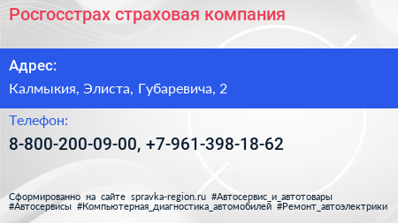 Росгосстрах, страховая компания по адресу Калмыкия, Элиста, Губаревича, 2 в дальнейшем Организация, размещена в следующих категориях: