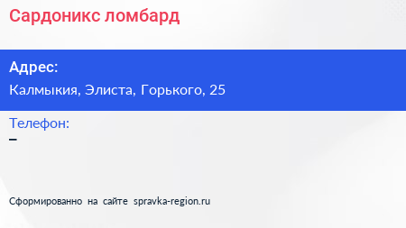 Сардоникс, ломбард по адресу Калмыкия, Элиста, Горького, 25 в дальнейшем Организация, размещена в следующих категориях: