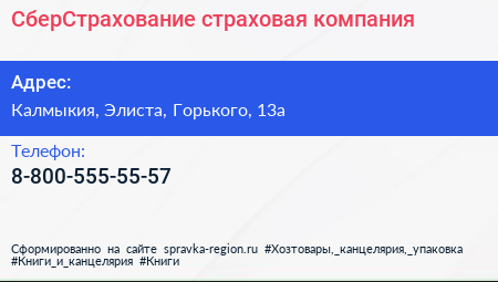 СберСтрахование, страховая компания по адресу Калмыкия, Элиста, Горького, 13а в дальнейшем Организация, размещена в следующих категориях: