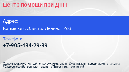 Центр помощи при ДТП по адресу Калмыкия, Элиста, Ленина, 263 в дальнейшем Организация, размещена в следующих категориях: