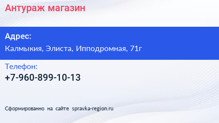 Антураж, магазин по адресу Калмыкия, Элиста, Ипподромная, 71г в дальнейшем Организация, размещена в следующих категориях: