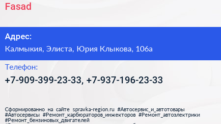 Fasad по адресу Калмыкия, Элиста, Юрия Клыкова, 106а в дальнейшем Организация, размещена в следующих категориях: