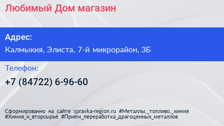 Любимый Дом, магазин по адресу Калмыкия, Элиста, 7-й микрорайон, 3Б в дальнейшем Организация, размещена в следующих категориях: