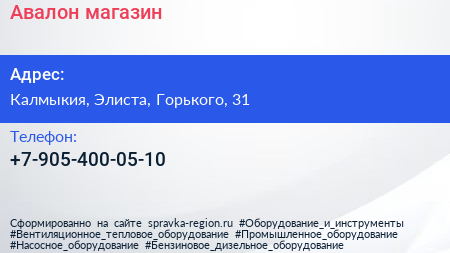 Авалон, магазин по адресу Калмыкия, Элиста, Горького, 31 в дальнейшем Организация, размещена в следующих категориях: