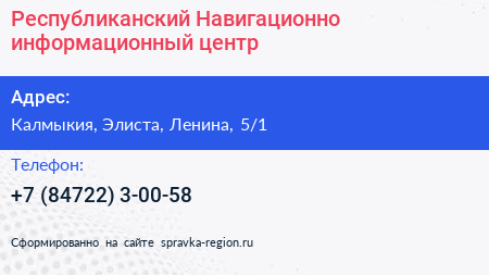 Республиканский Навигационно-информационный центр по адресу Калмыкия, Элиста, Ленина, 5/1 в дальнейшем Организация, размещена в следующих категориях: