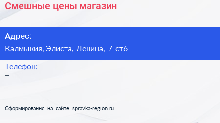 Смешные цены, магазин по адресу Калмыкия, Элиста, Ленина, 7 ст6 в дальнейшем Организация, размещена в следующих категориях: