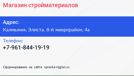 Магазин стройматериалов по адресу Калмыкия, Элиста, 8-й микрорайон, 4а в дальнейшем Организация, размещена в следующих категориях: