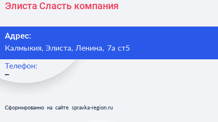 Элиста Сласть, компания по адресу Калмыкия, Элиста, Ленина, 7а ст5 в дальнейшем Организация, размещена в следующих категориях: