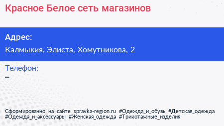 Красное & Белое, сеть магазинов по адресу Калмыкия, Элиста, Хомутникова, 2 в дальнейшем Организация, размещена в следующих категориях: