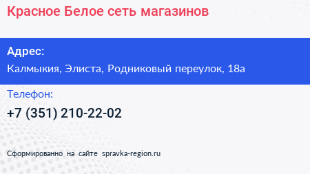 Красное & Белое, сеть магазинов по адресу Калмыкия, Элиста, Родниковый переулок, 18а в дальнейшем Организация, размещена в следующих категориях: