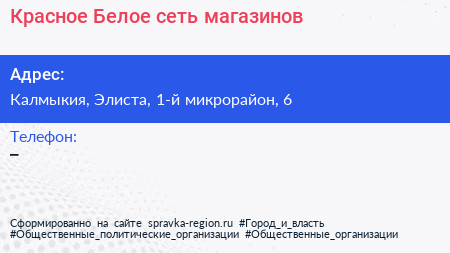 Красное & Белое, сеть магазинов по адресу Калмыкия, Элиста, 1-й микрорайон, 6 в дальнейшем Организация, размещена в следующих категориях: