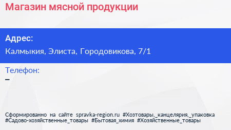 Магазин мясной продукции по адресу Калмыкия, Элиста, Городовикова, 7/1 в дальнейшем Организация, размещена в следующих категориях: