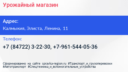 Урожайный, магазин по адресу Калмыкия, Элиста, Ленина, 11 в дальнейшем Организация, размещена в следующих категориях: