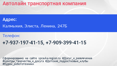 Автолайн, транспортная компания по адресу Калмыкия, Элиста, Ленина, 247Б в дальнейшем Организация, размещена в следующих категориях: