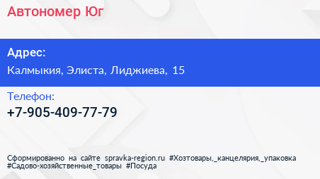 Автономер-Юг по адресу Калмыкия, Элиста, Лиджиева, 15 в дальнейшем Организация, размещена в следующих категориях: