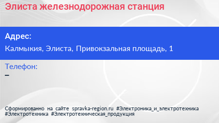 Элиста, железнодорожная станция по адресу Калмыкия, Элиста, Привокзальная площадь, 1 в дальнейшем Организация, размещена в следующих категориях: