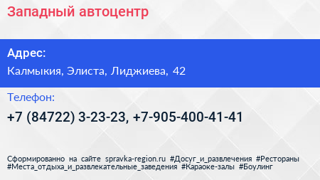 Западный, автоцентр по адресу Калмыкия, Элиста, Лиджиева, 42 в дальнейшем Организация, размещена в следующих категориях: