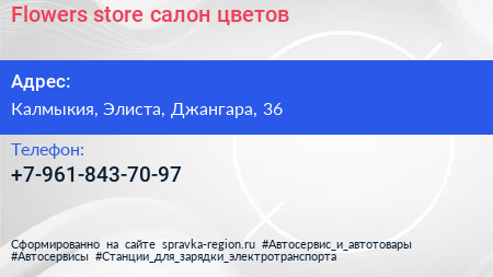 Flowers store, салон цветов по адресу Калмыкия, Элиста, Джангара, 36 в дальнейшем Организация, размещена в следующих категориях: