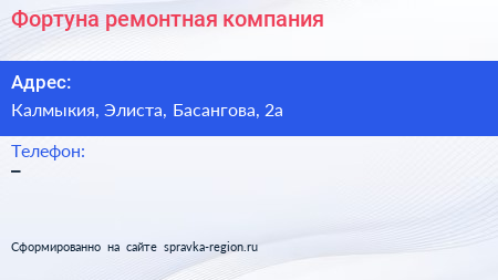 Фортуна, ремонтная компания по адресу Калмыкия, Элиста, Басангова, 2а в дальнейшем Организация, размещена в следующих категориях: