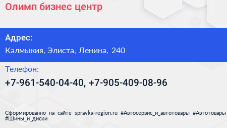 Олимп, бизнес-центр по адресу Калмыкия, Элиста, Ленина, 240 в дальнейшем Организация, размещена в следующих категориях: