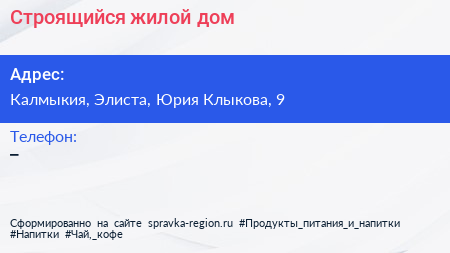 Строящийся жилой дом по адресу Калмыкия, Элиста, Юрия Клыкова, 9 в дальнейшем Организация, размещена в следующих категориях: