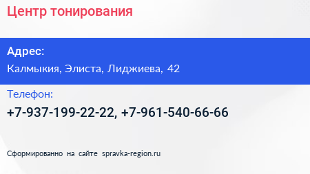 Центр тонирования по адресу Калмыкия, Элиста, Лиджиева, 42 в дальнейшем Организация, размещена в следующих категориях: