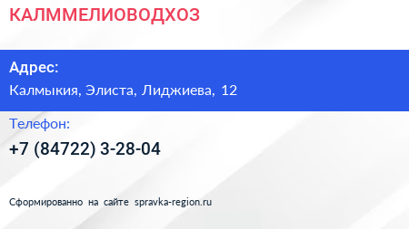 КАЛММЕЛИОВОДХОЗ по адресу Калмыкия, Элиста, Лиджиева, 12 в дальнейшем Организация, размещена в следующих категориях: