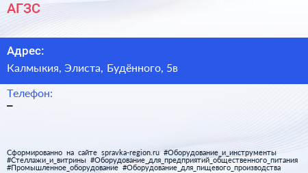 АГЗС по адресу Калмыкия, Элиста, Будённого, 5в в дальнейшем Организация, размещена в следующих категориях:
