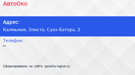 АвтоОко по адресу Калмыкия, Элиста, Сухэ-Батора, 2 в дальнейшем Организация, размещена в следующих категориях:
