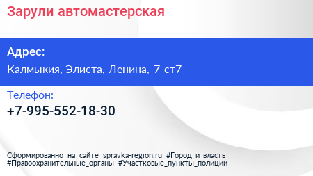 Зарули, автомастерская по адресу Калмыкия, Элиста, Ленина, 7 ст7 в дальнейшем Организация, размещена в следующих категориях:
