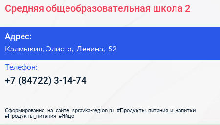 Средняя общеобразовательная школа №2 по адресу Калмыкия, Элиста, Ленина, 52 в дальнейшем Организация, размещена в следующих категориях: