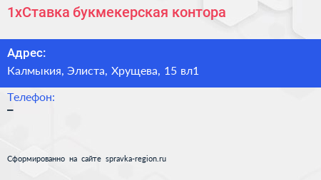 1хСтавка, букмекерская контора по адресу Калмыкия, Элиста, Хрущева, 15 вл1 в дальнейшем Организация, размещена в следующих категориях:
